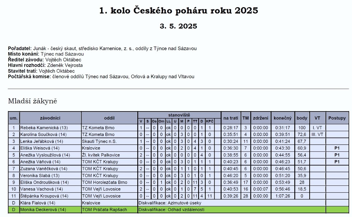 1. závod ČP - 3. 5. 2025 - Týnec nad Sázavou