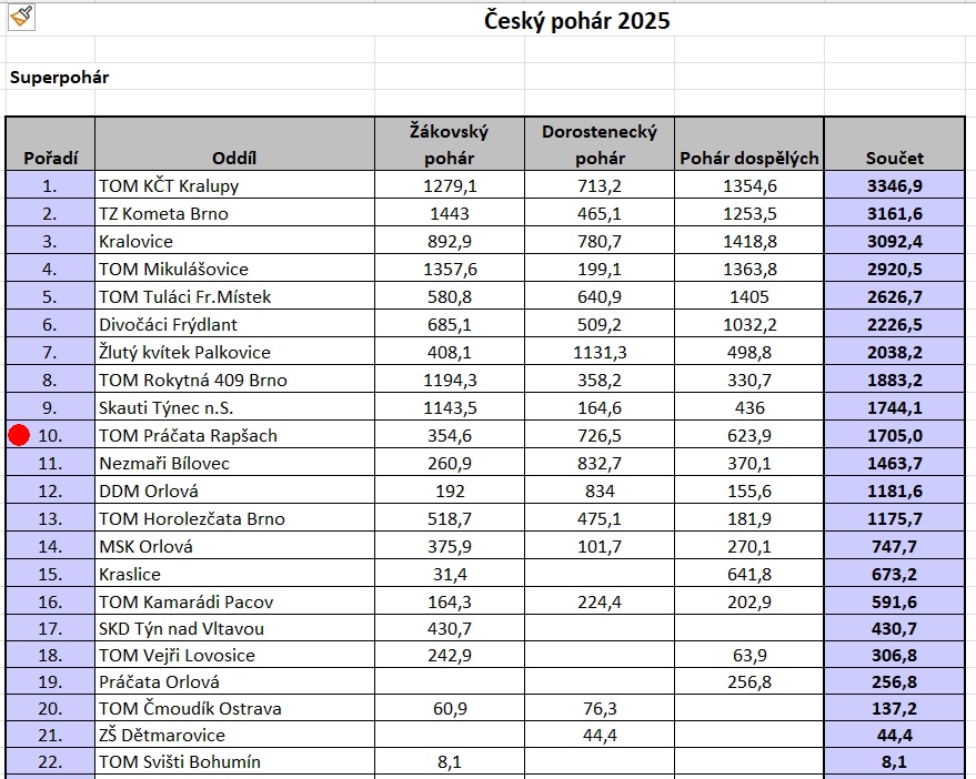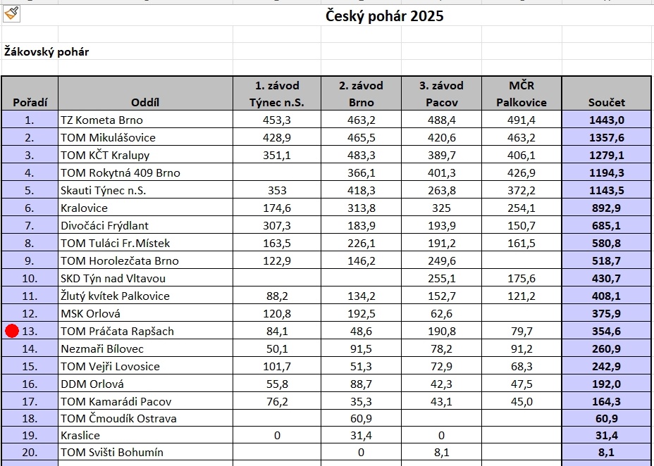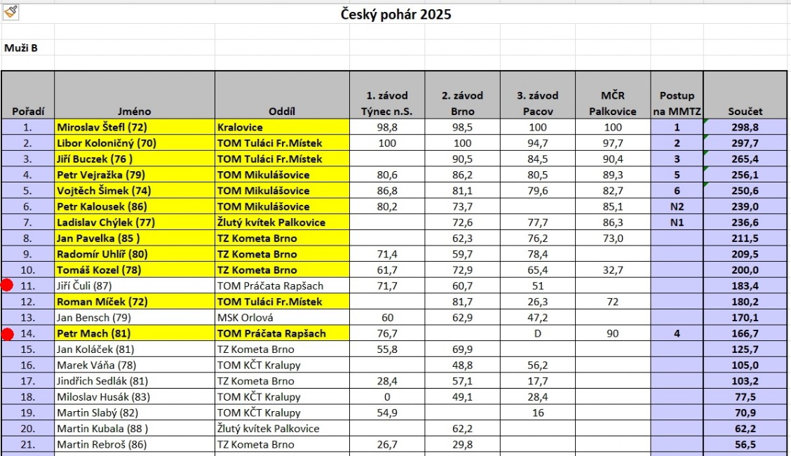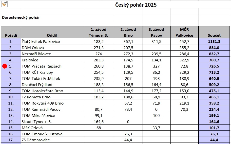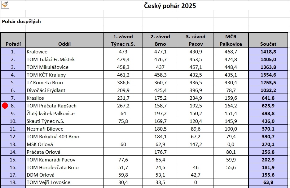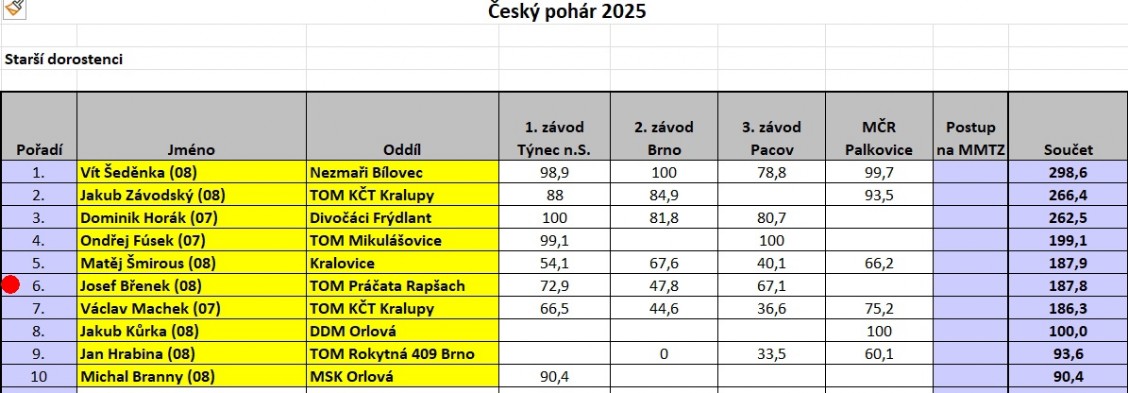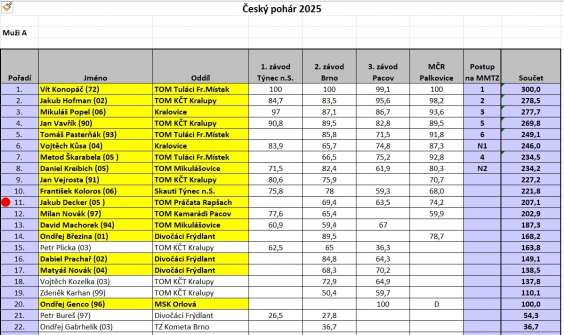 Celkové výsledky ČP 2025 - TOM PRACATA