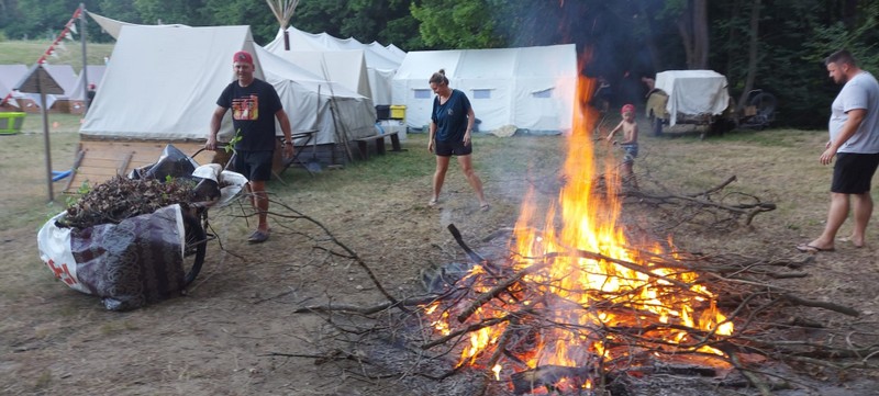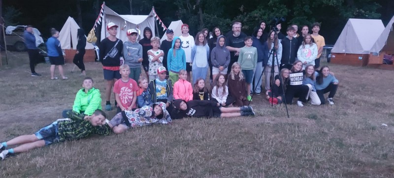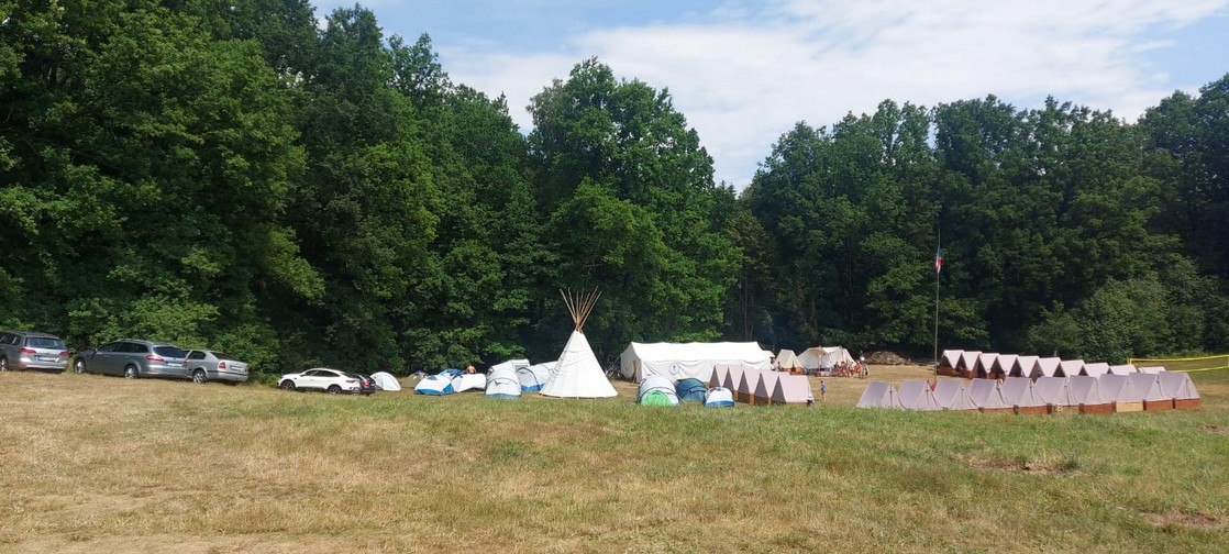 ška a Dana. Po nástupu se všichni vydali do lesa kromě Natálky, se kterou jsme se museli bohužel rozloučit, protože předčasně odjela. Malý nosily chrastí a velcí kluci tahali klády z lesa. Některé velké holky si chtěly postavit táborák (nápad Neli) a jejich touhy byly vyslyšeny a celý táborák postavily skoro samy. Měly obecenstvo, které jim radilo, jak táborák postavit, ale holky i přes jejich zbytečné připomínky makaly a táborák stál. Sotva holky v hrozném horku dostavěly táborák a už nás svolávali na špagety po dračicku se sýrem. Pak nastal polední klid, kdy skoro všichni nacvičovali scénky k táboráku. Z trénování nás vyrušili a vzali nás na pískovnu. Po hodinovém koupání v pískovně jsme se vydali k Čechalům, kde jsme si dali dřívější večeři, protože nám při ranním nástupu oznámili, že nebude. A však po návratu do tábora jsme zjistili, že to byly FAKE NEWS [Fejk Ňuvs], dostali jsme chlebík se šunkou, sýrem a rajčetem. Doladili jsme poslední úpravy na našich vystoupeních a vedoucí dne nás svolal na nástup. Při nástupu jsme si zahráli tichou poštu při které fráze „Adam smrdí“, se nedostala ani do půlky. Rozdala se pošta a šli jme k táboráku. Zazpívali jsme si, ukázali naše scénky, přečetli kroniku a šli spát. Vypadá to že se v noci bude něco dít, ale to vám povíme zítra…