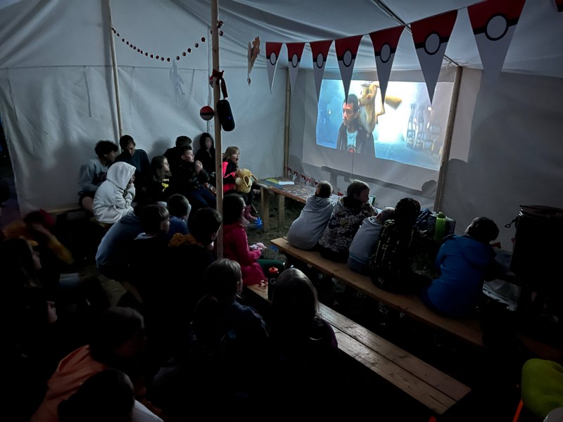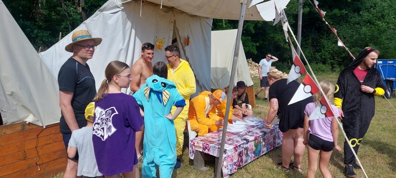píseň Pokémon. Po velmi „náročné“ rozcvičce jsme dostali velmi lahodnou snídani v podání SALÁMOVÉ MÁNIE. Při nástupu nám bylo oznámeno, že musíme udržovat oheň, dodnes neznáme důvod. Dopoledne jsme museli nasbírat energie, přičemž se nás Bulbasaur snažil chytit svými šlahouny a zabránit nám v jejich zisku. Poté jsme byli rozděleni do nových dočasných týmů, které byly složené z malých a velkých. Týmy soutěžily proti sobě v živelných piškvorkách, při kterých bylo potřeba zapojit nejen mozek, ale i nohy. Ačkoliv jsme hráli celé dopoledne a někteří při čekání na řadu usnuli, hru jsme stále nedohráli. Za odměnu jsme dostali výtečnou čínu s rýží. O poledním klidu jsme buď spinkali nebo hráli hry. Samozřejmě nás Hanz s Tomášem vzali do dokonalé Ice cold [Ajs kold] pískovny. Neobešlo by se ro bez jejich zajímavého programu. Nejdříve jsme se mlátili mokrými žížalami. Některé zápasy byly opravdu kruté a nepřátelské. Druhá hra spočívala v tom, že jsme museli vybraného člena našich nových speciálních pískovnových týmů zahrabat do písku tak, že mu musela být vidět jen hlava. Do třetice jsme hráli ve vybraných dvojicích Kohoutí zápasy, které se neobešly bez jednoho utopence (Barči). K večeři jsme dostali rohlík s rybí pomazánkou. Než jsme stihli dožvýkat poslední sousto, tak nás Kreklík postupně svolával do hangáru, kde nás odměnil možností chytit si malého pokémona. Ve stejných skupinách po 6 jsme byli posláni zabojovat o kamenný odznak z města Pewtercity. Poté se už hrály klasické míčové hry nebo se odpočívalo. Pak už jen nástup, zoubky a malý do Teepee!