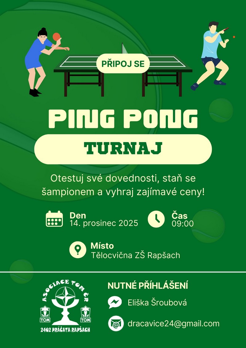 TURNAJ VE STOLNÍM TENISE - 14. 12. 2026